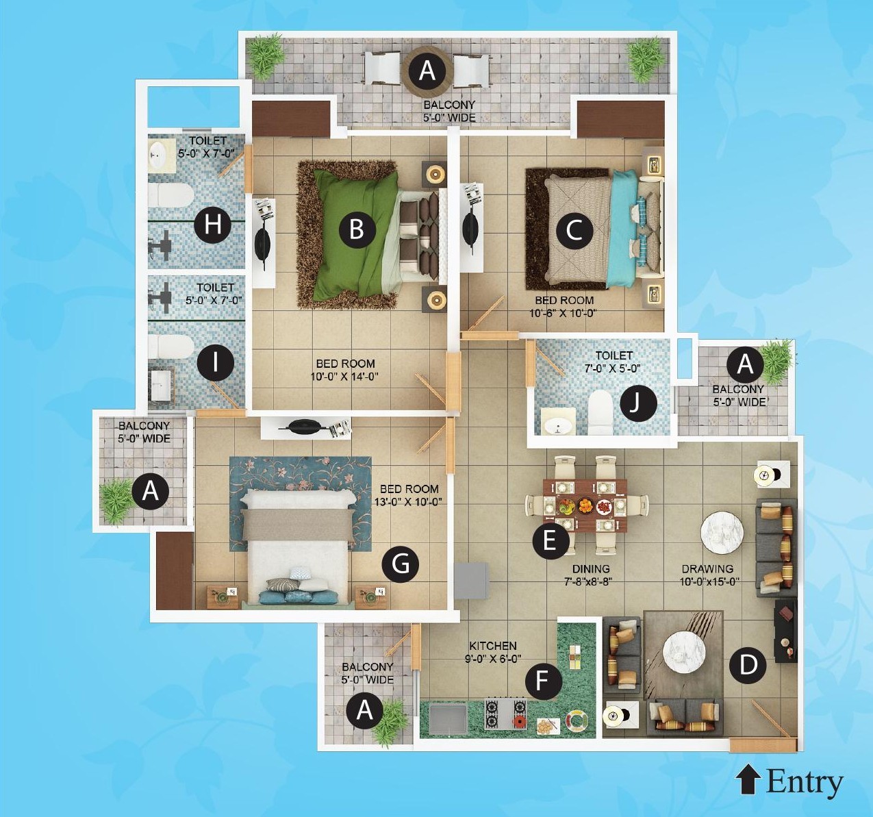 BALCONIES :-Ceramic floor tiles.
