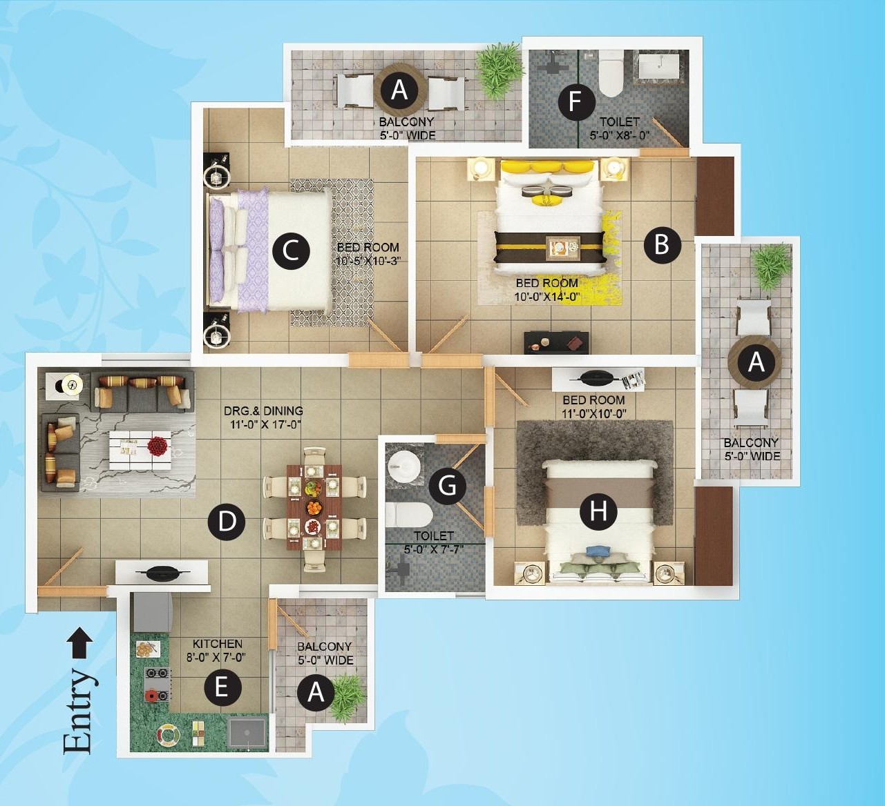 BEDROOMS :-Vitrified titles.